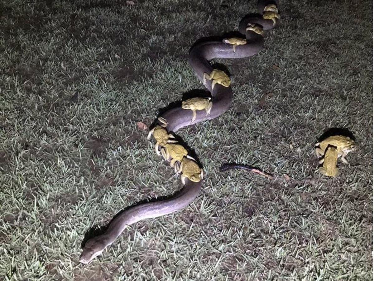 Cane Toads Seen Riding Giant Python To Escape Rising Flood Waters In Australia The Independent The Independent
